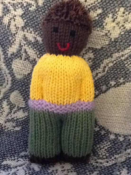 Here is my first finished doll, soon to be on its way to a child who needs him.