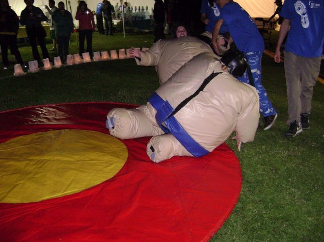 More pictures of the event here and here. Videos of our epic sumo battle here and here.